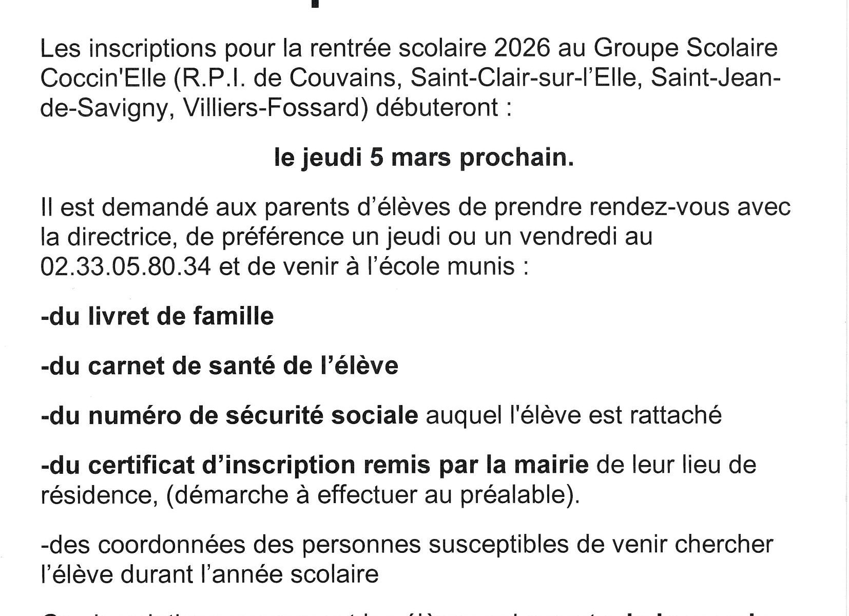 Pour la commune de St Clair sur l’Elle, les permanences à St Clair sur l’Elle auront lieu, à la mairie, le 27/06/2023 et le 06/12/2023 de 9h à 11h.
